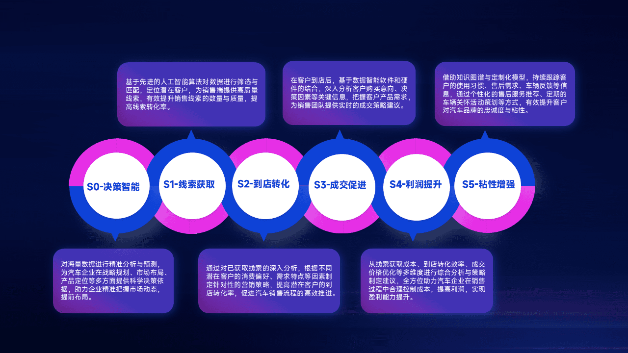 通过拓宽潜在客户来源、、、、优化线索分配并提高到店转化率,,,以增强销售效率。。同时,,,利用线索数据不断优化分析模型,,有效提升转化率,,,扩大营销影响力。。。